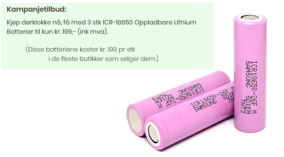 Batteri: 3 stk ICR18650 Ladbare Lithium batterier